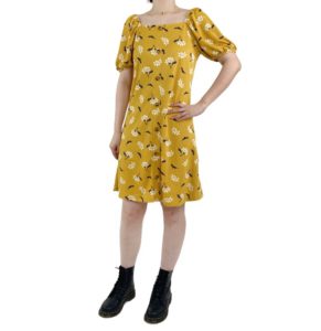 Women Floral Print Short Ruffle Sleeve Midi Dresses